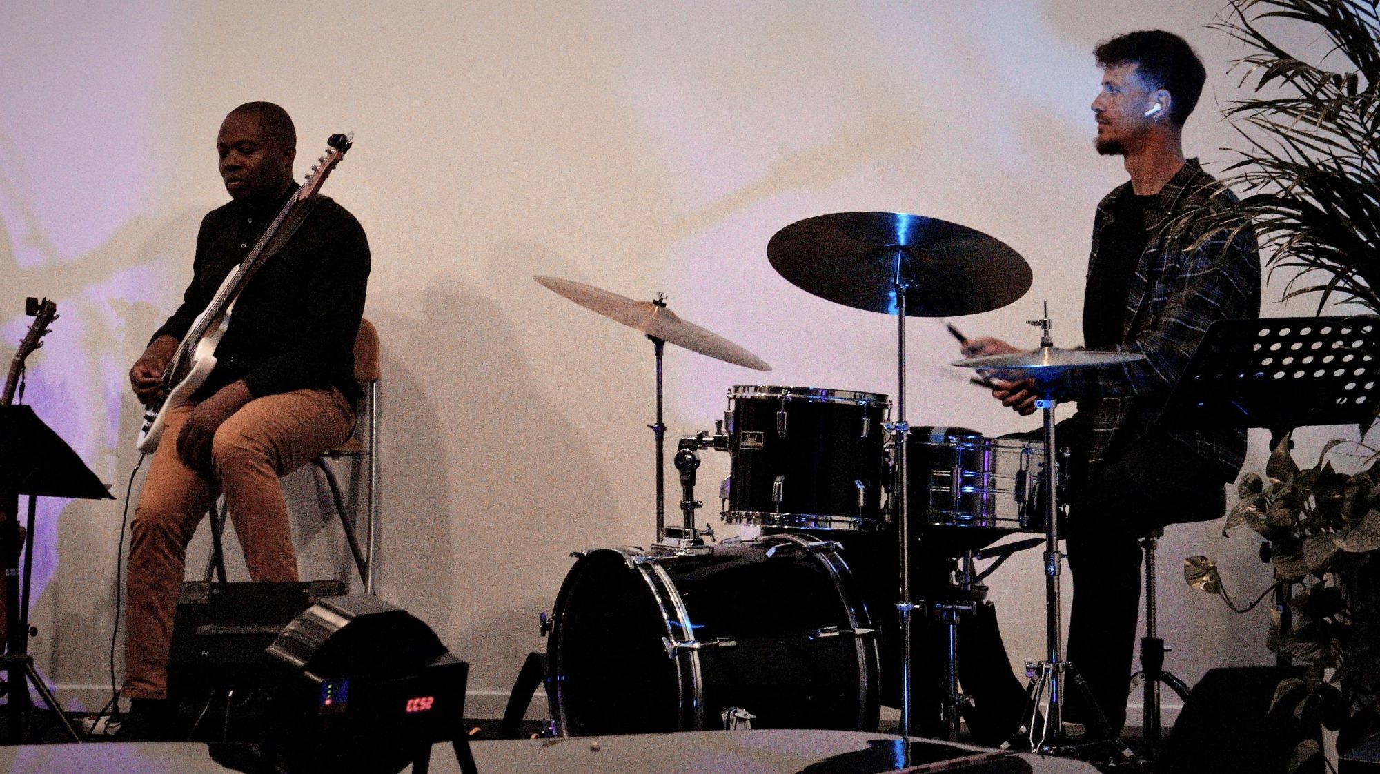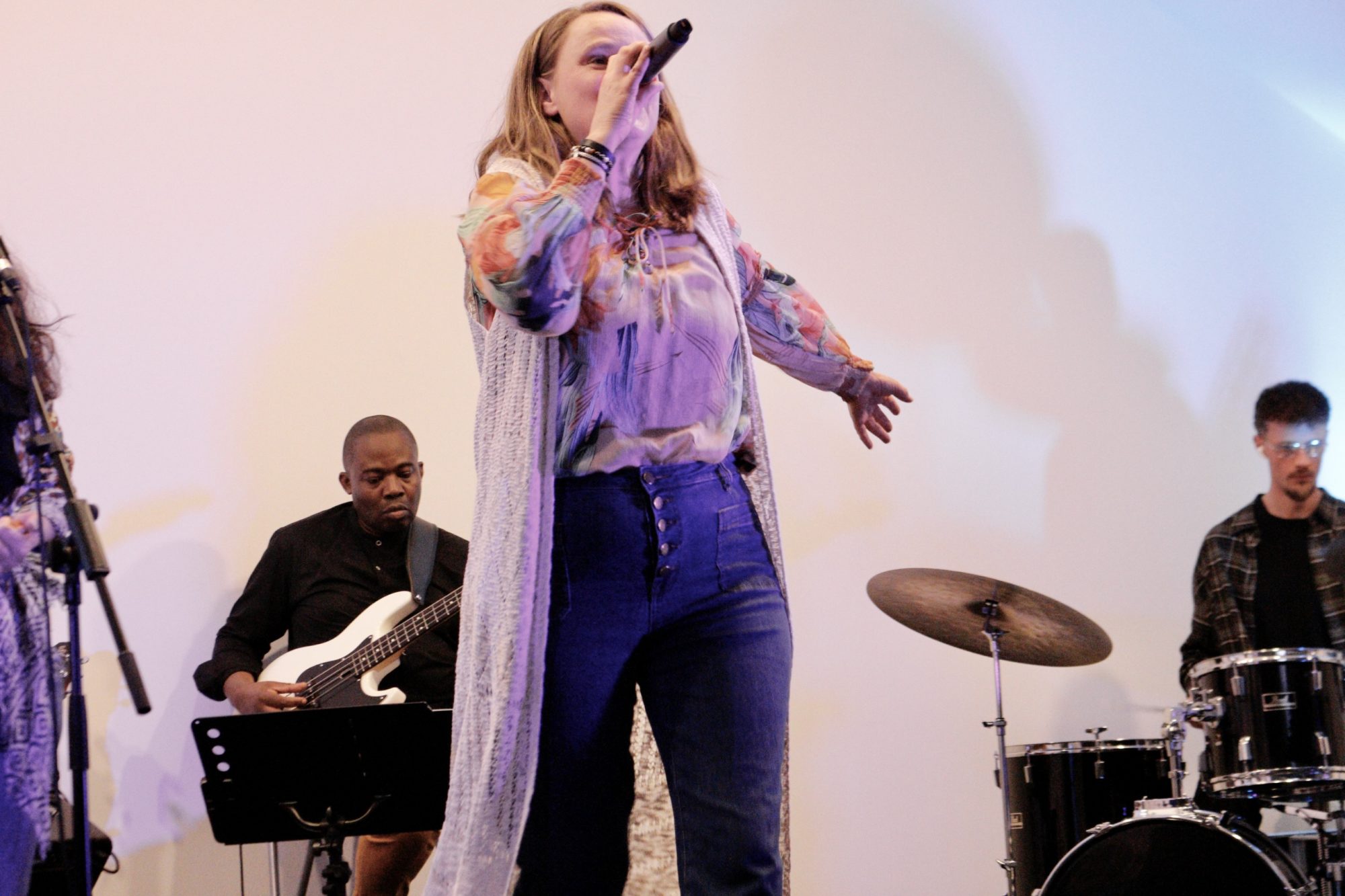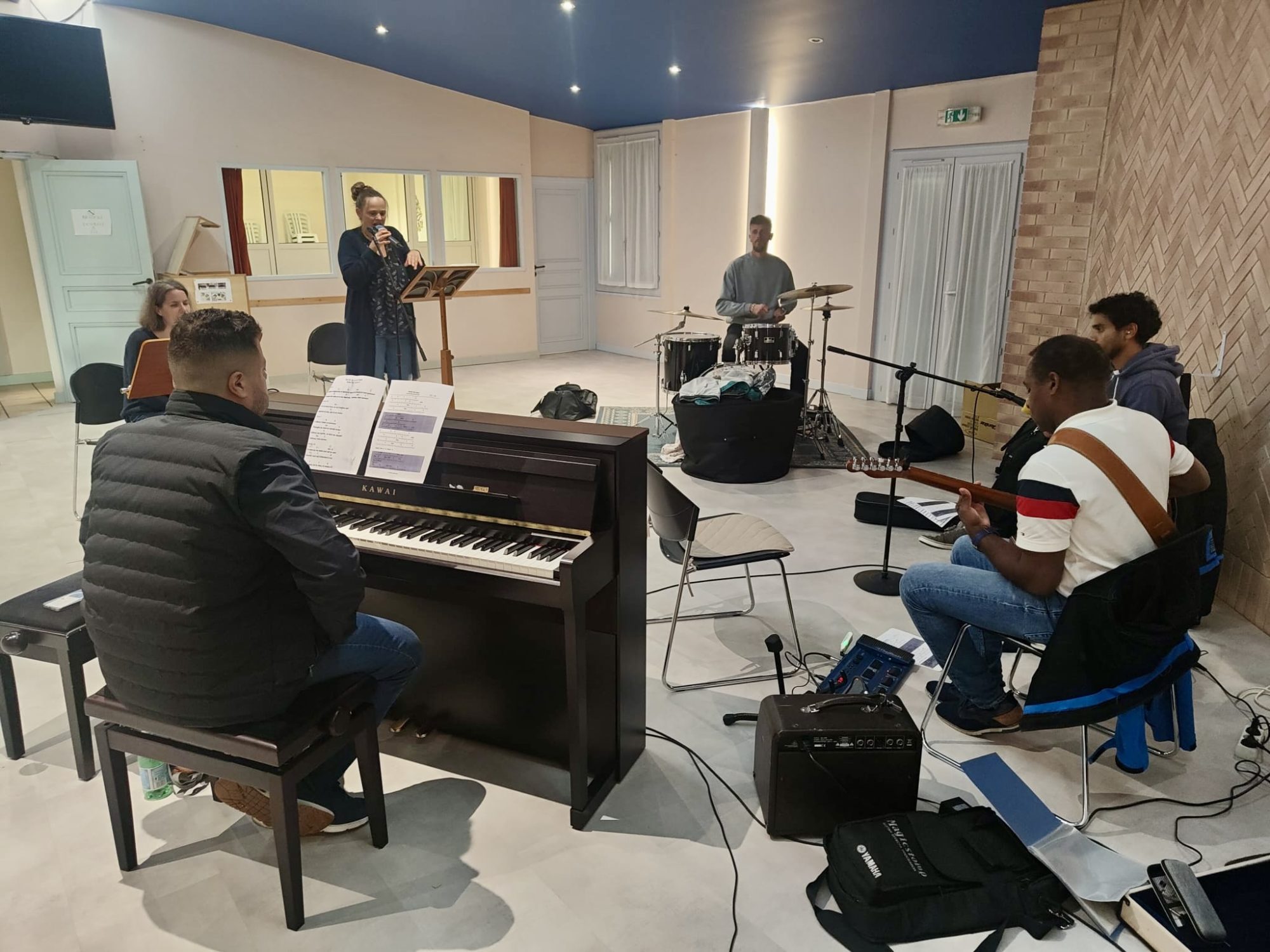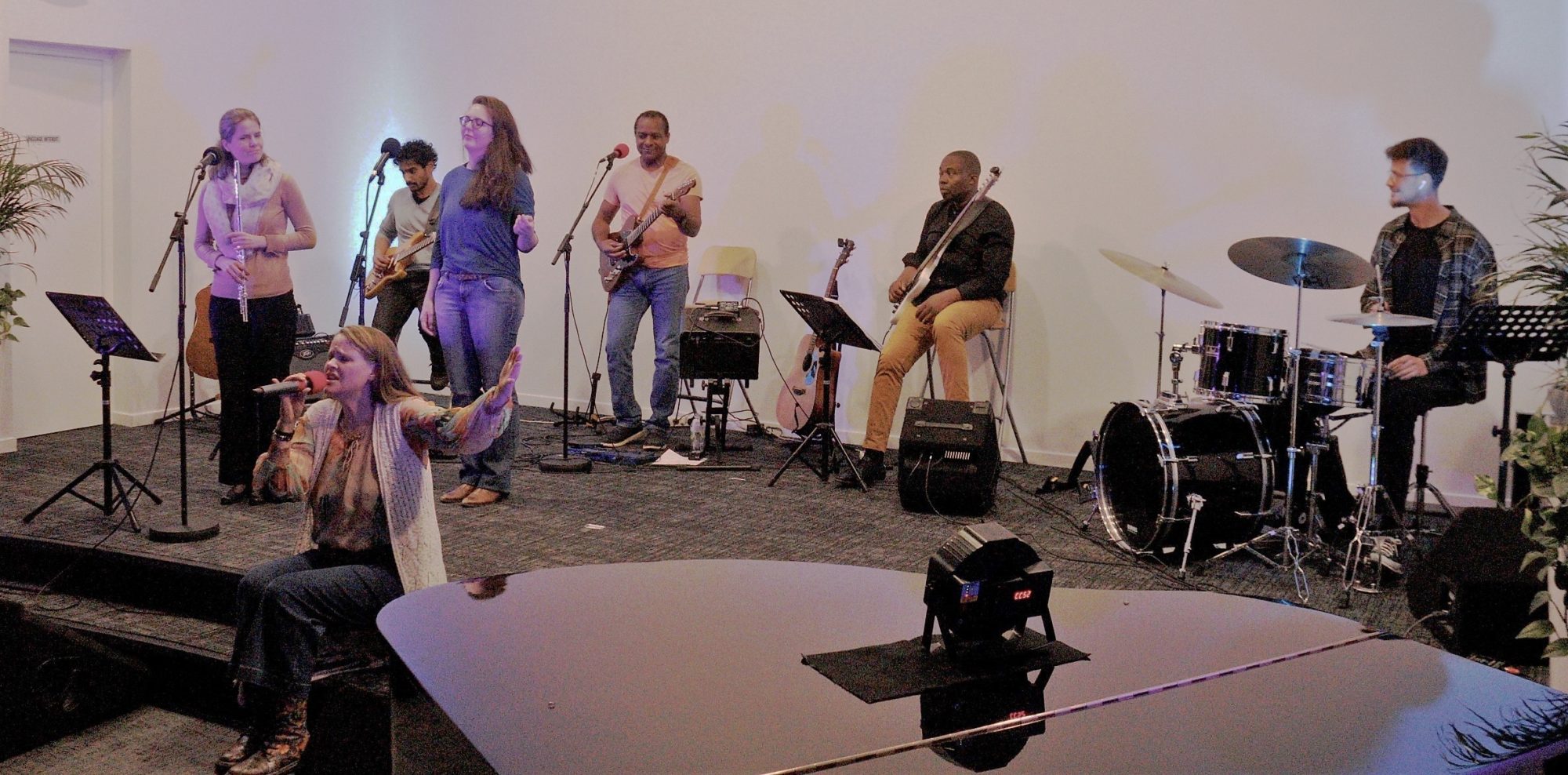 🎶 Erica DumWae & Band en concert, c’est : un pianiste, deux guitaristes, un bassiste, un batteur, une flutiste et deux choristes.