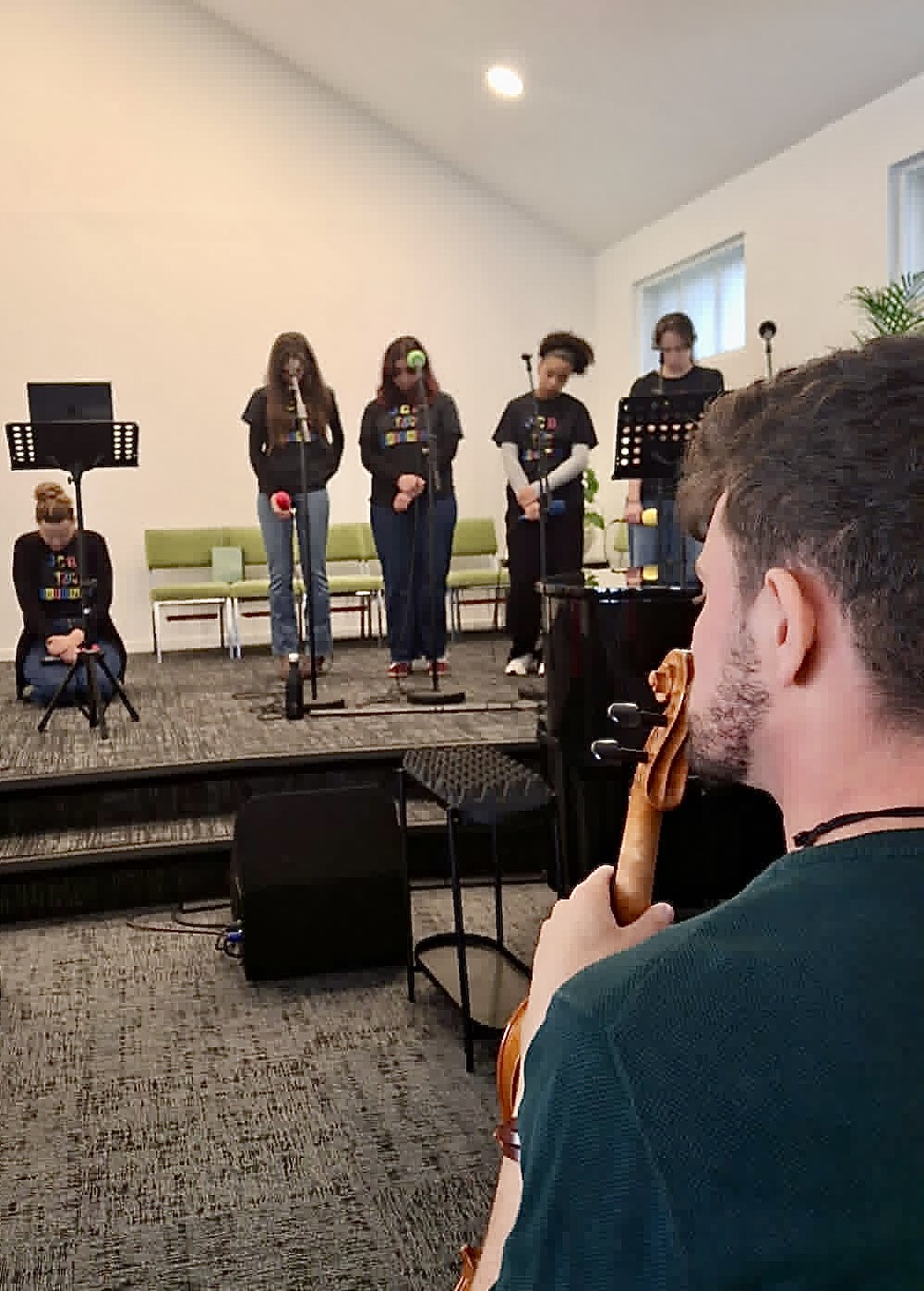 - Avec le groupe JCR&Friends, un collectif de jeunes avec lequel je travaille depuis plusieurs années pour ce type d’interventions. Nous veillons à ce que la majorité des chants soient déjà connus de votre assemblée.